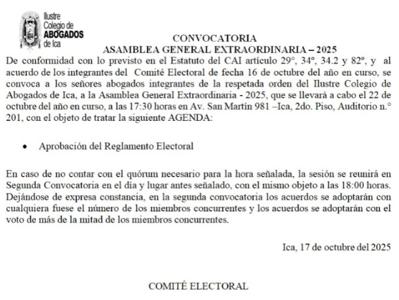 - Tesorero: Abg. Max Yorgos Pérez Lengua, CAI n.º 2167.