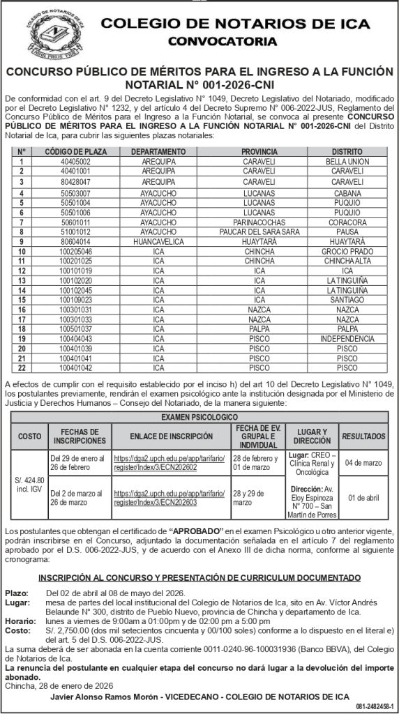 📌 Lugar: Colegio de Notarios de Ica, Av. Víctor Andrés Belaunde (Pueblo Nuevo, Chincha)