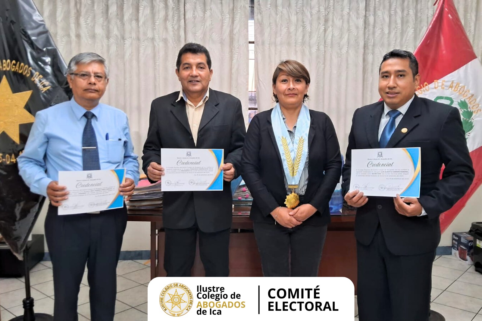 Nuestra decana, Abg. Fabiola Donayre Pérez, realizó la entrega de credenciales a los miembros del Comité Electoral 2025 del Ilustre Colegio de Abogados de Ica, quedando integrado por: