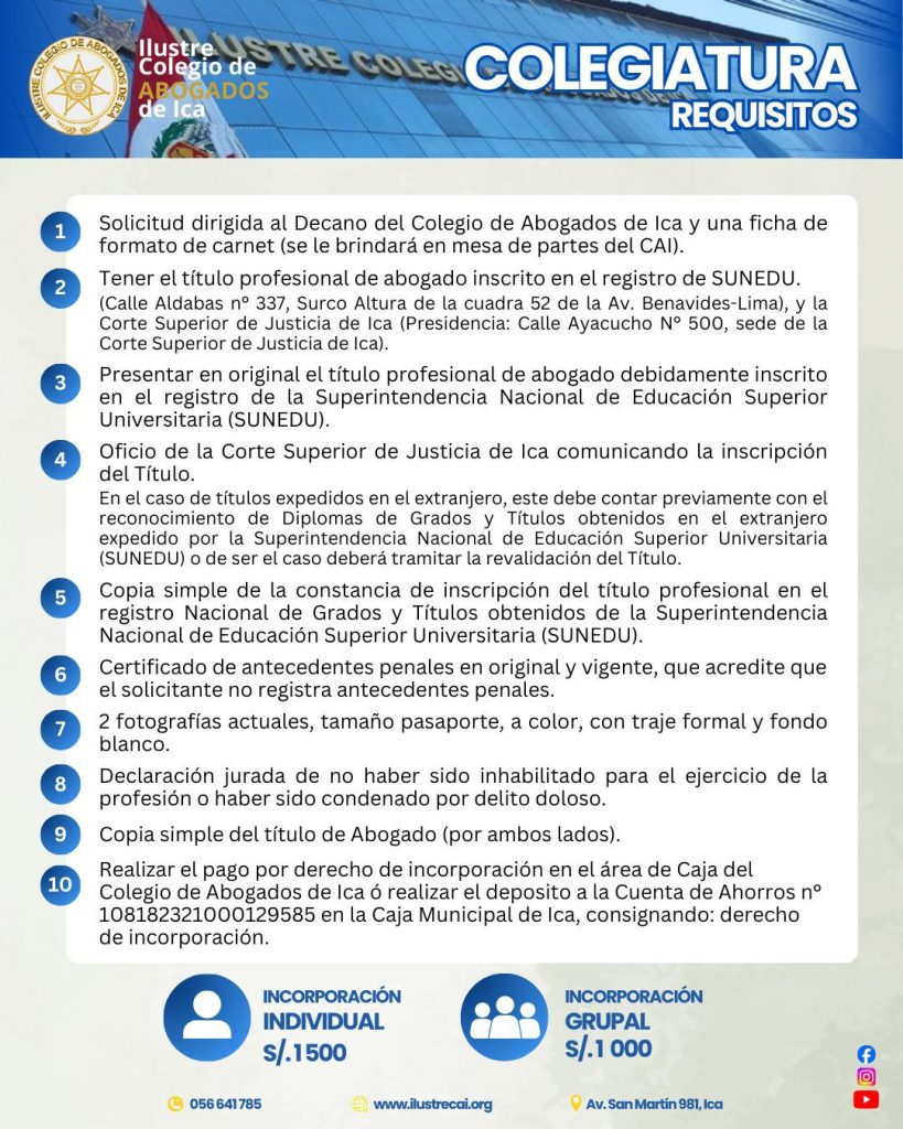 🫡 Te invitamos a unirte a nuestra orden y formar parte del Ilustre Colegio de Abogados de Ica.